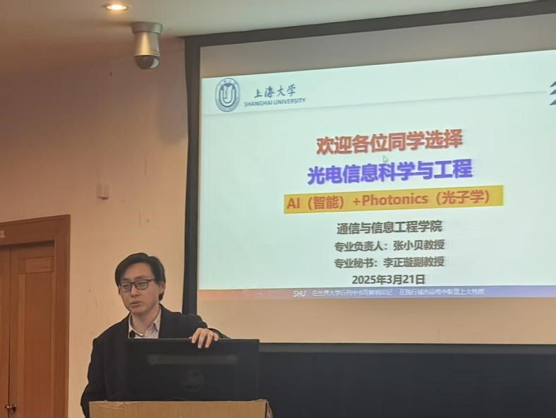 宣讲当中,张小贝老师手持激光器,现场演示光电技术的奇妙应用。“光通信、量子计算、AR/VR……我们的目标是让‘科幻’变成‘现实’!”多维育人模式与企业深度合作,让同学们对“高精尖”领域跃跃欲试。