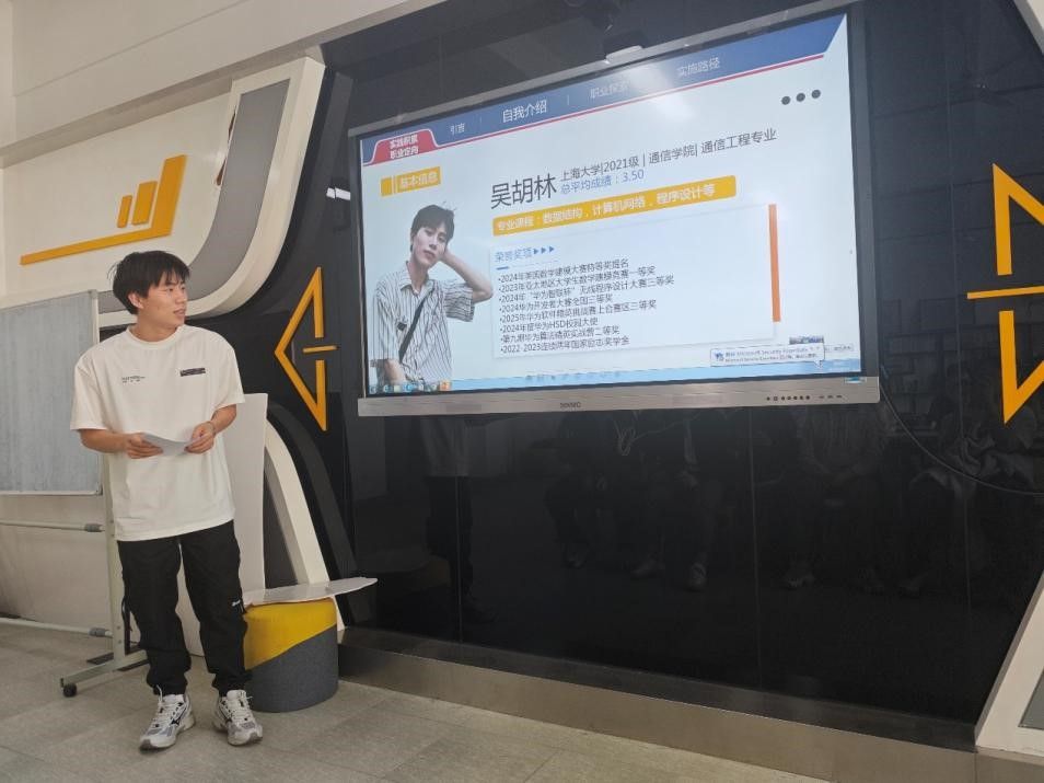 吴胡林学长首先分析了通信专业目前的就业形势,让同学们对本科毕业去向有了基本了解。接着,吴胡林学长分享了自己参加过的竞赛及实习经验,展示自己兴趣探索、职业探索的过程,引导同学们在学习和实践中找寻自己的兴趣点,从而明确职业目标。“要克服失败的阴影,在经验中学习成长” ,吴胡林学长以自己多次面试失败,不断汲取经验教训,最终斩获华为offer的经历为例,建议同学们要经得起失败,从失败中总结经验和教训,才能在人群中脱颖而出。