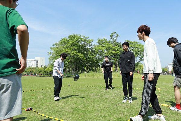 活动以精彩爆笑的“蒙眼尖叫鸡挑战”开场,参赛者戴上眼罩,在队友的指引下寻找目标。场上的选手小心翼翼摸索,场下的队友们则化身“指挥官”,或精准引导,或“花式指挥”,引得笑声不断。此起彼伏的尖叫鸡声和欢快的加油声,为活动增添了别样的趣味,书写着青春的乐章。