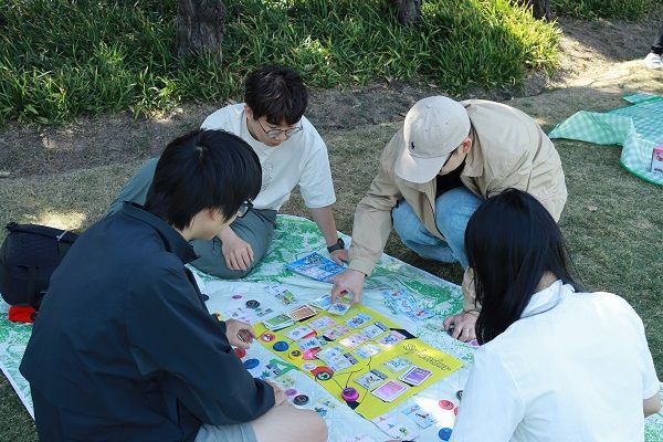 运动环节结束后,同学们三三两两地围坐在野餐垫上,享受着提前准备的精美茶歇,开启了充满策略与趣味的桌游时间。有人沉浸在狼人杀的推理中,有人在UNO的竞技中斗智斗勇,还有人在三国杀的战场上斗智斗勇。同时实践部还特别准备了经典桌游《宝石商人》的改版——《宝可梦进化》,将收集宝石的玩法与宝可梦的进化机制巧妙结合,瞬间点燃了大家的热情。刺激愉快的桌游环节中,有人稳扎稳打,步步为营;有人出其不意,实现逆袭。每一轮决策都考验着大家的策略思维。春日的暖阳下,现场气氛热烈,欢声笑语不断,直到活动结束,大家仍意犹未尽。