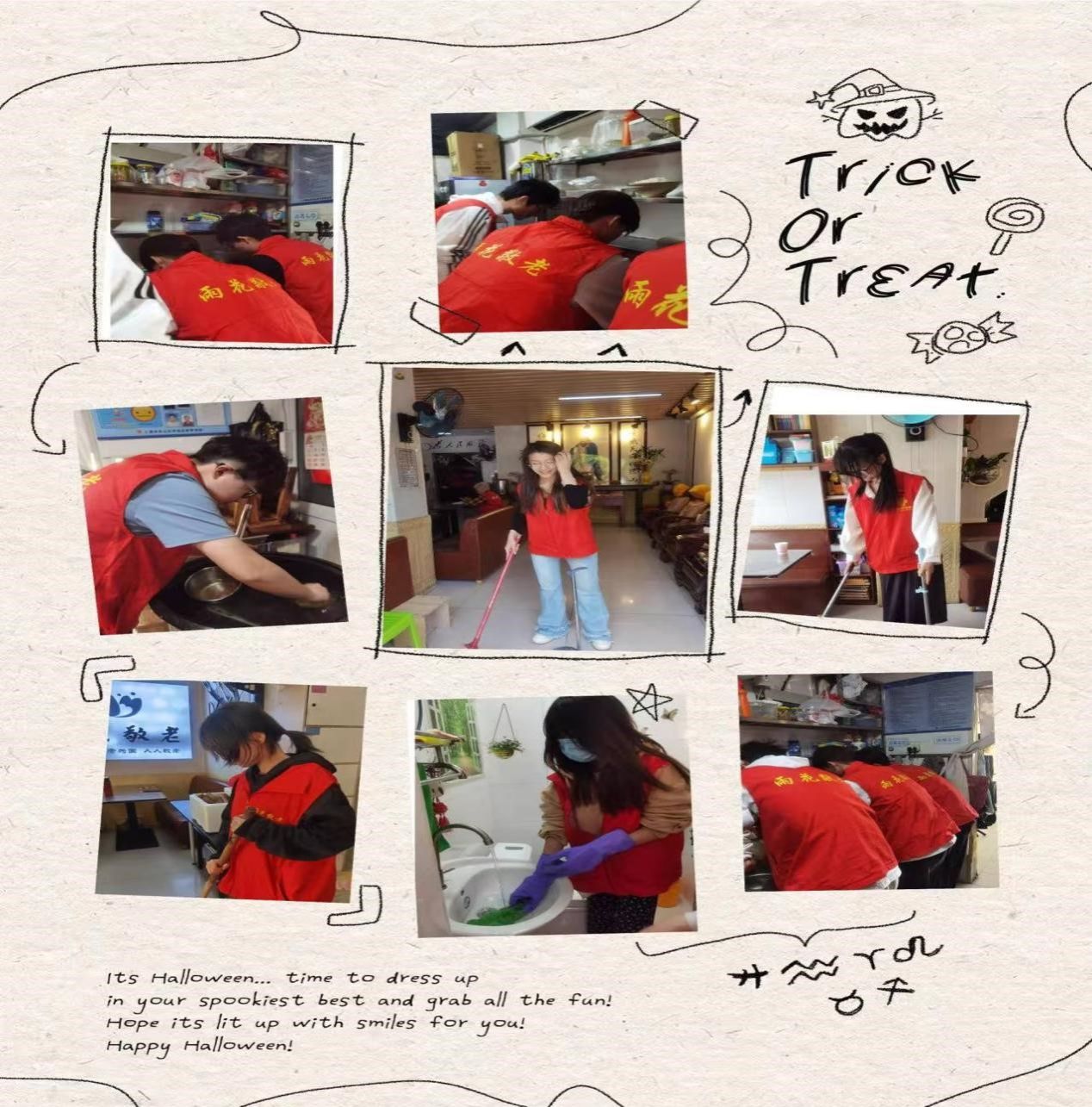 素餐传孝意,躬身见真情。正午时分,志愿者们化身银发餐桌的守护者。将每一份南瓜莲子羹,馒头送往老人桌前,等老人们用餐结束后,再将打包好的晚饭送出。餐后清洁环节,志愿者们认真完成了扫地,拖地,洗碗,打扫卫生间等工作。