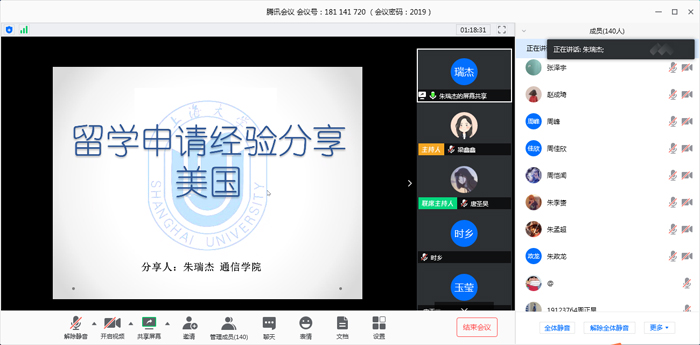 2020年考研国家线已于4月14日公布,值此,yl23411永利集团、翔英公司2019级于4月23日晚18:30开展了“青春荣光,与你分享读研的那些选择”云端第二课堂。活动邀请到yl23411永利集团2016级吴博学长和朱瑞杰学长进行读研方面的经验分享,旨在解答同学们的相关困惑,为自身生涯发展规划打下基础。辅导员梁鑫鑫老师及2019级全体同学参与了本次活动,活动由通信二班唐圣昊主持。