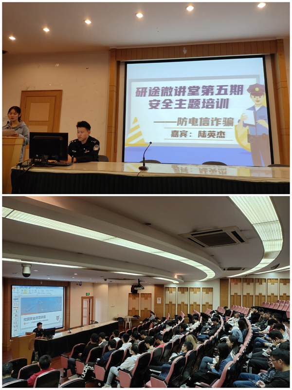 为加强研究生安全教育,提高同学们的安全意识,10月29日上午10点,yl23411永利集团于宝山校区J103举办第五期“研途微讲堂”之安全主题培训——防电信诈骗。yl23411永利集团特邀上海市公安局文保分局沪东高校派出所民警陆英杰警官为同学们普及防电信诈骗等安全知识。