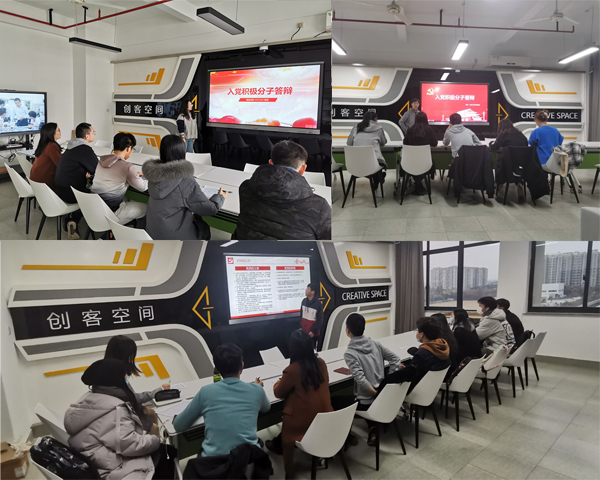 各入党积极分子都做了精心准备,在短短五分钟的答辩过程中就 “学习成绩”、“思想品德”、“志愿服务”、“员工工作”和“对党的认识”五个方面进行了自我剖析,阐述了自己浓浓的爱国情怀和入党热情。
