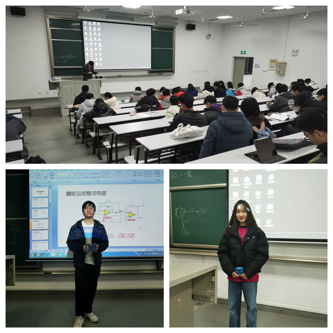 2020年12月25日晚上18:00到20:00,yl23411永利集团团委员工会学术部组织在通J101和102开展了冬季学期项目交流会,邀请蒋玮、刘储峰、陆珉俊、龚乐为、郑嘉怡等学长学姐为19届的同学们讲解冬季学期模电和数电项目的相关知识,帮助同学们理解和设计相关电路图。