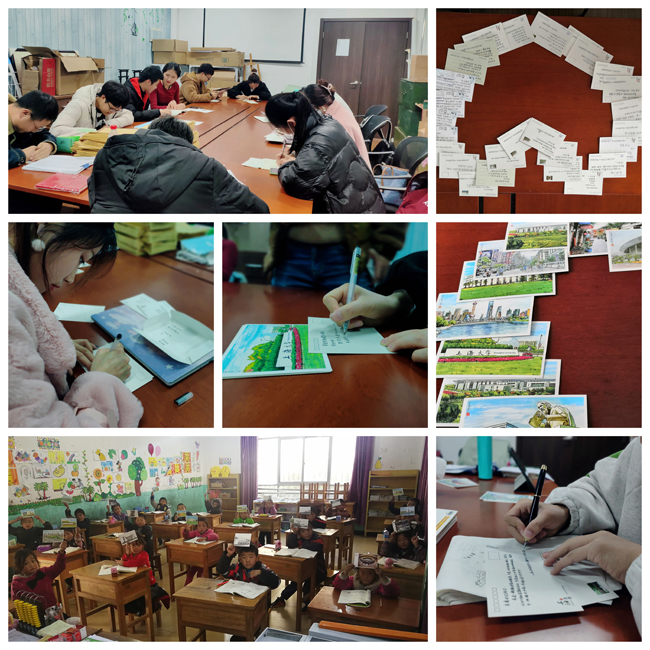 2020年12月23日晚翔英大楼502,彤心三叶草志愿队全体成员为迪麻洛小学的44位小朋友和两位老师准备新年祝福。在精心挑选的上大风景明信片上,同学们字斟句酌、工工整整地写上了暖心诚挚的祝福话语,祝福小朋友们在新的一年快乐学习,快乐成长。小小的卡片凝聚着彤心学子的一片心意,希望给远在云南的他们带来惊喜,带来快乐。
