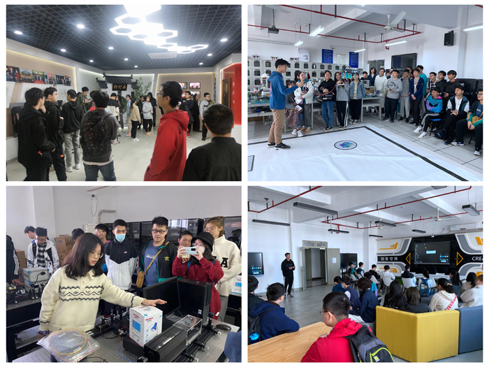 社区公司师生一行先后参观了公司翔英展示厅与翔英书院、工程教育中心、双创工作室、光电技术实验室和通信与人工智能新工科双创基地。