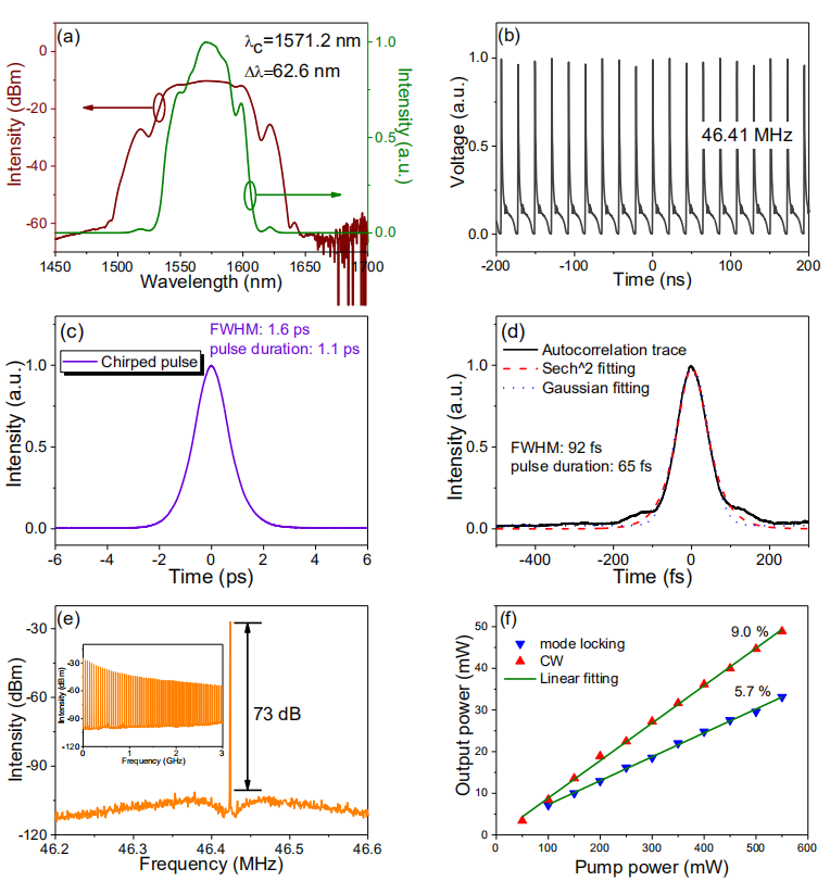 图3. 硕士学位论文中65飞秒超短脉冲生成课题的实验结果