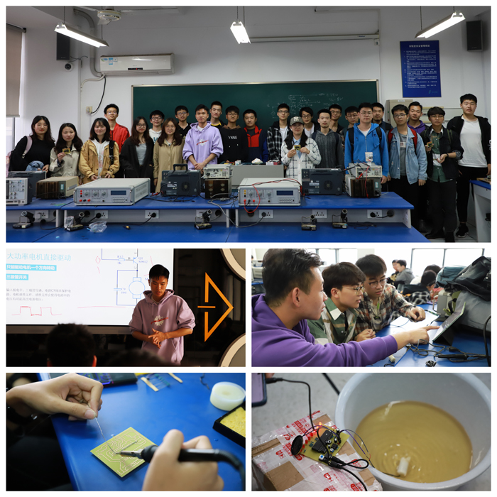 下午13:00,活动正式开始。池烽学长就“基于51单片机的音乐喷泉”电路原理、程序编写等进行细致的讲解,现场互动氛围浓厚。讲解结束后,同学们跃跃欲试,来到402实验室,开始进行音乐喷泉PCB板元件的焊接。学长以及三位社长指导并协助大家进行焊接操作、设备调试,及时解决过程中遇到的问题。