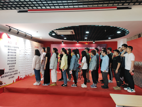 党旗作为中国共产党的象征和标志,无时无刻不在提醒着我们“不忘初心跟党走”,在场的同学们穿针引线,将千丝万缕对党的情义绘制成党的旗帜。活动结束后,在场的积极分子们学习了入党誓词。通过这次活动,大家在一针一线的党旗绣制中加深了对党的无限热爱和对祖国的美好祝愿。