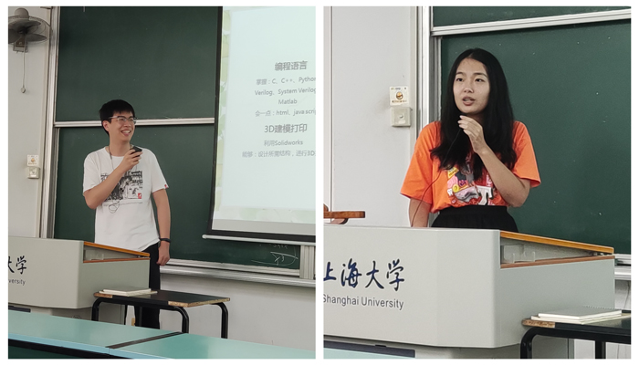 陈琪,中共预备党员,通信11班学习委员,目前保研至中国科学技术大学。陈琪学姐与同学们强调了基础课的重要性,如微积分、线性代数、C语言、工程制图、英语等课一门都不能落下,并与大家介绍了学习和考研的干货,希望对同学们有所帮助。另外,学姐还推荐同学们去参与创新创业项目,了解学科竞赛,提升团队协作能力,合理安排课余时间,更表示欢迎大家去实验室学习参观。