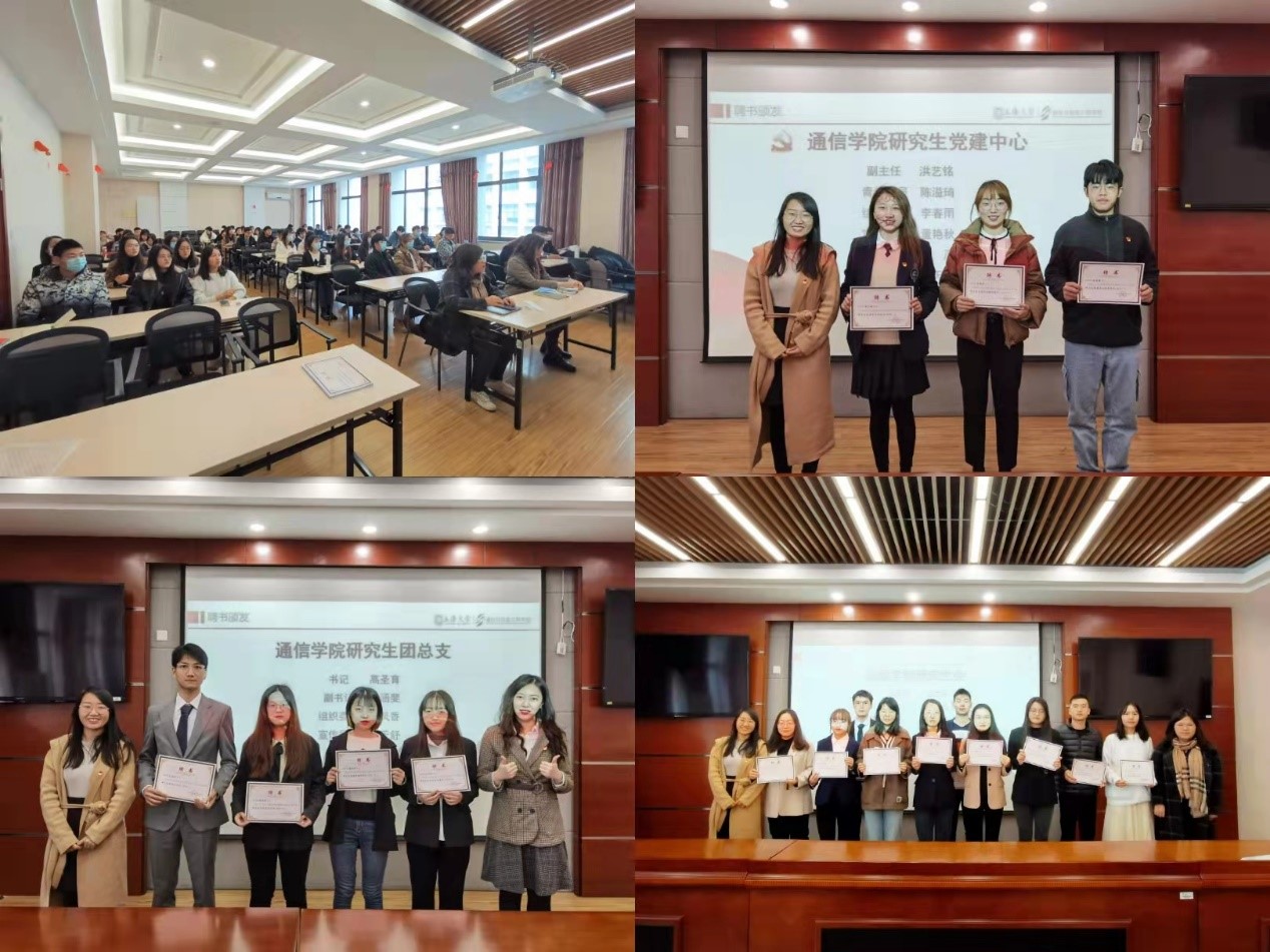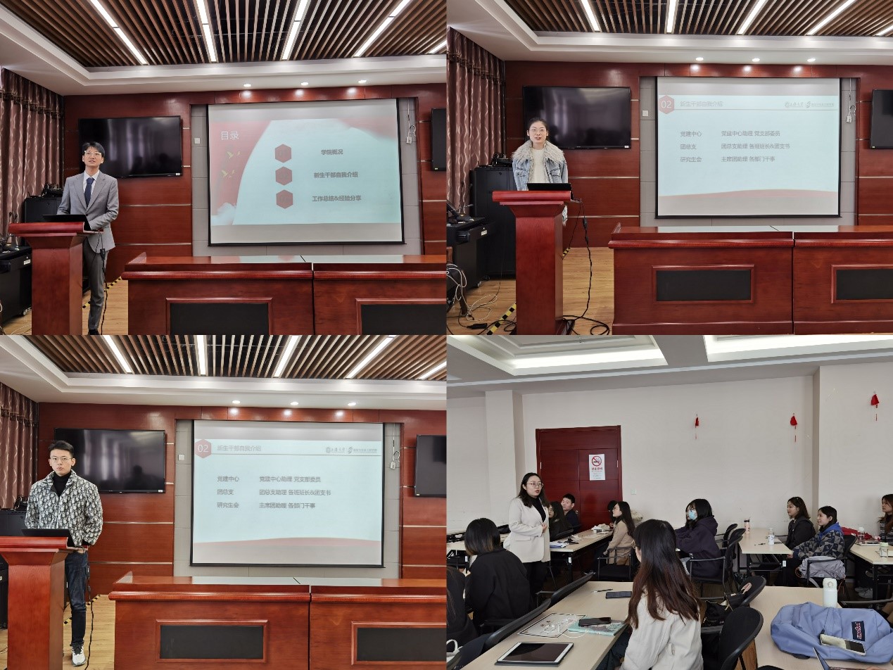 首先,全体肃立,奏唱国歌。随后,靳佳敏、万星佑和陈安琪老师分别上台为研究生党建中心、团总支和研究生会成员颁发聘书并拍照留念。接下来,靳佳敏老师向新一届党团研员工干部们提出期望,希望研究生党团研的每一位同学都能认真负责地对待自己的职位,协助老师们做好公司的各项工作,做好同学们和公司老师之间的桥梁,立足岗位,有所创新、有所突破、有所收获,锻炼自己各方面的能力,成就更好的自己。同时,靳老师强调,科研是研究生的主要任务,希望大家可以平衡好自己的时间,创新工作方法,高效率完成工作。