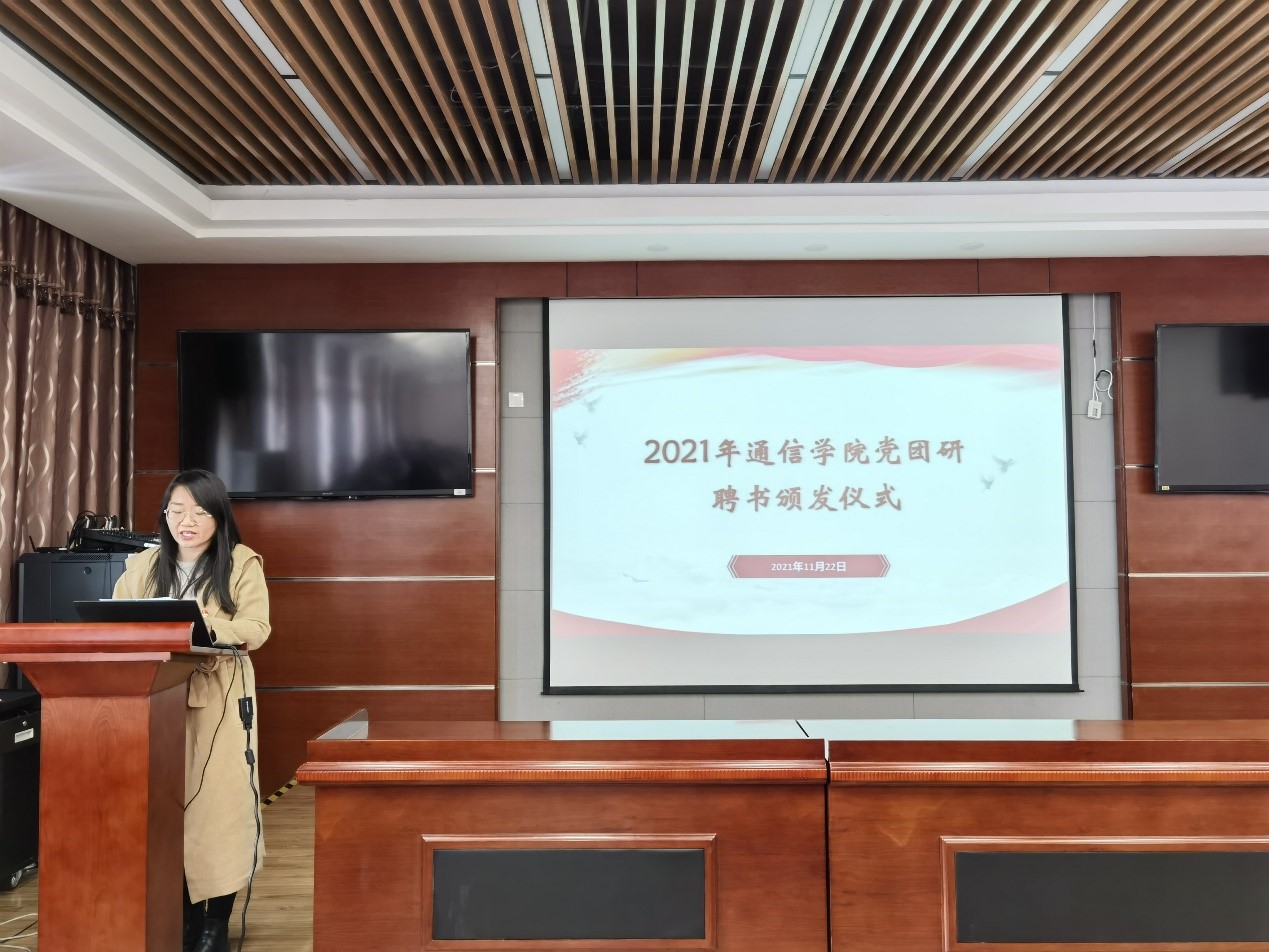 为加强公司研究生干部队伍建设,2021年11月22日上午,yl23411永利集团于翔英楼T516举行yl23411永利集团2021年研究生党团研聘书颁发仪式。yl23411永利集团研究生辅导员靳佳敏、万星佑和陈安琪老师,研究生党建中心、团总支和研究生会成员、2021级新生党支部书记、委员以及2021级各班班长和团支书出席本次会议。会议由党建中心主任靳佳敏老师主持。