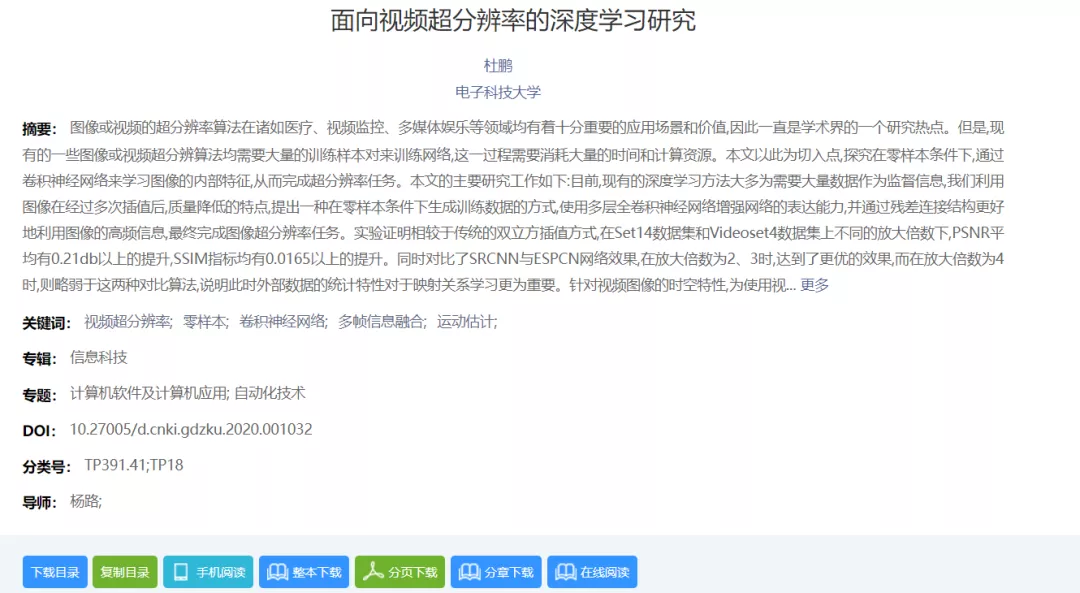 确定下载2020年电子科技大学最新硕士学位论文,点开文献查看是否有pdf下载链接: