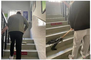 2020级研究生第一党支部中也有不少入党积极分子也参与到了“我为师生办实事”的实践活动中。他们利用自己的课余时间,协助宿舍楼道管理员,在宿舍楼内打扫卫生、更换体温表、整理楼下车棚内自行车等,在日常生活中为身边的同学创造良好的生活环境。