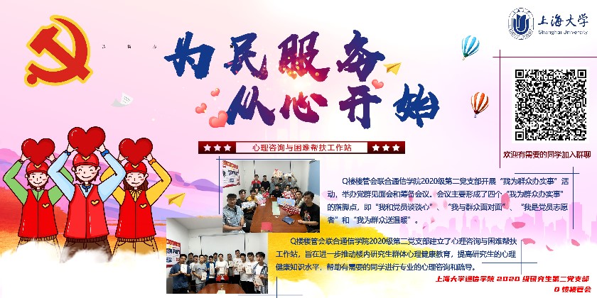 此次“我为群众办实事”活动是在习近平新时代中国特色社会主义思想的指导下开展的,弘扬了党的光荣传统、优良作风,践行党的初心使命、根本宗旨。在这次活动中,党支部同学们带头实干,积极行动,充分发挥了员工党员不怕苦、不怕累、任劳任怨的精神。不仅充分彰显了通信研究生党员干部的先锋模范作用,以实际行动践行初心和使命,而且也树立起了“一名党员、一面旗帜”的良好形象。今后,我们将继续与时俱进,稳步推动党支部的各项建设,勇创佳绩。
