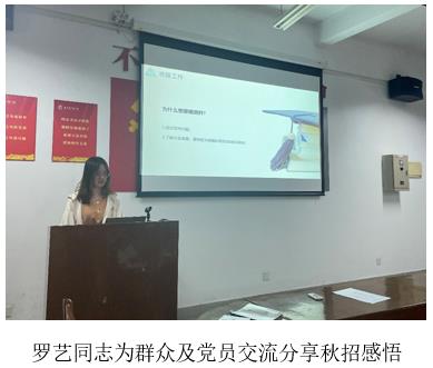 由于进入研究生三年级,作为毕业班即将迎来秋招,为了更好地服务同学,让同学们更好了解招聘需求、做好应聘的准备,2019级研究生第四党支部安排了3名有实习面试经验的党员同学,为其他同学做一次工作交流分享会。