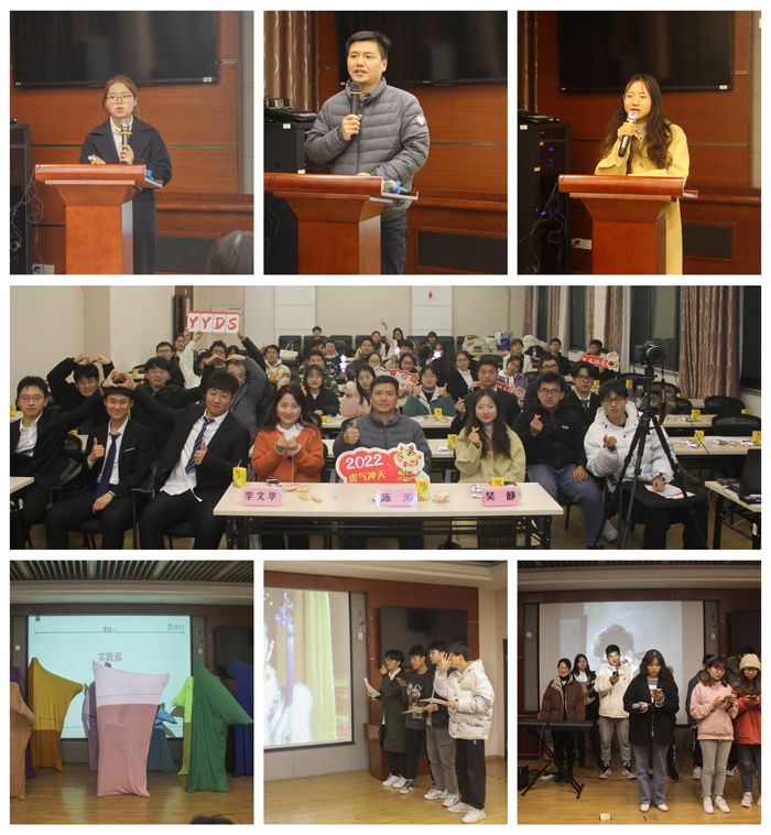演出环节中,各部门“各显神通”,为大家带来了富有创意、精彩纷呈的表演。出场实践部的一支《被单舞》,“魔性”的舞姿、活灵活现的演绎逗得大家笑声不断;办公部的配音表演《甄嬛传狼人杀》,让大家沉浸在有声有色的配音之中;科创部与组织部为大家带来的原创配音表演,让人意犹未尽;新媒体中心的音乐剧表演《你相信光吗》,带大家在欢快的氛围中重温儿时回忆;文体部带来的经典歌曲串烧,琴声吉他声歌声交织,引起了全场的共鸣。小游戏环节,师生们热情洋溢,“斗智斗勇”,欢笑声不断。经过在场观众的投票,文体部的表演获得了全场一等奖,新媒体中心、组织部和科创部获得二等奖,实践部和办公部获得三等奖。