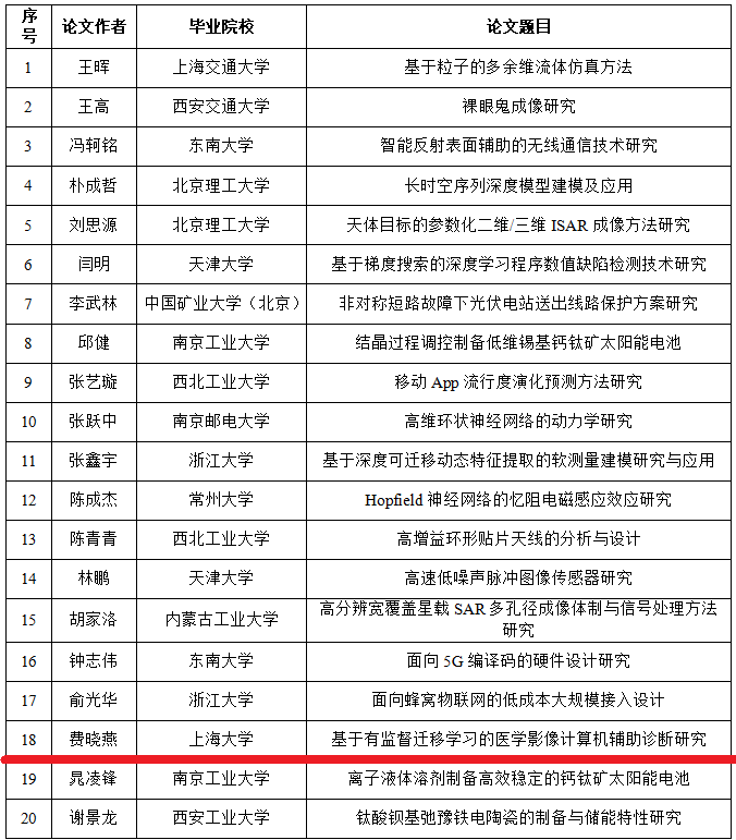 2021年度中国电子学会优秀硕士学位论文评价入选名单(按论文作者姓氏笔画排序)