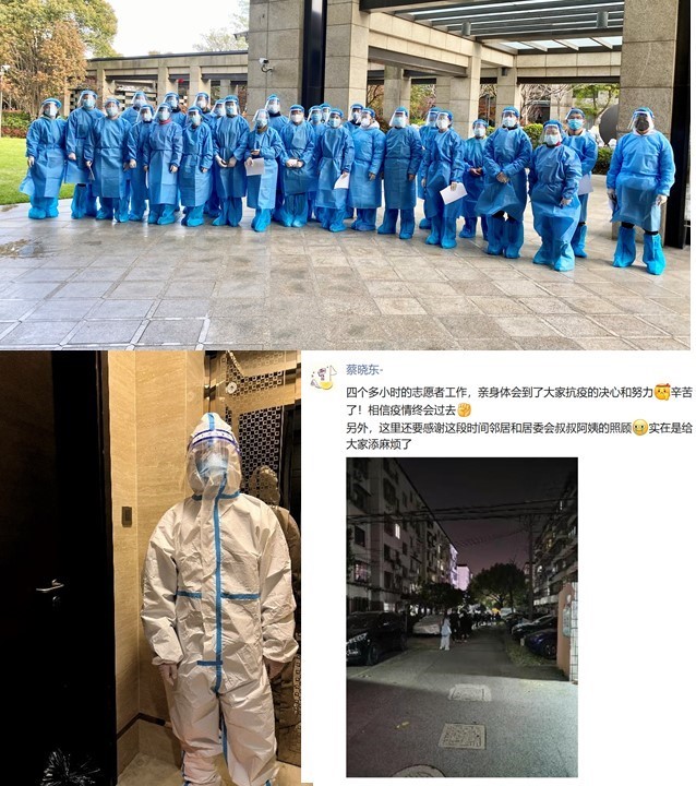 博士生第二党支部党员蔡晓东同志从公司返回社区后,积极响应号召,参与到社区疫情防控志愿活动中,担任核酸检测志愿服务工作,和医护人员并肩作战,密切配合认真引导居民有序排队、提醒大家保持间隔,按流程进行核酸检测。明天他也将穿上“大白”,引导社区居民有序完成核酸检测工作。