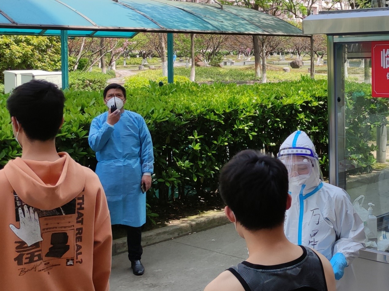 博士生第二党支部党员蔡晓东同学从公司返回社区后,积极响应号召,参与到社区疫情防控志愿活动中,担任核酸检测志愿服务工作,和医护人员并肩作战,密切配合认真引导居民有序排队、提醒大家保持间隔,按流程进行核酸检测。