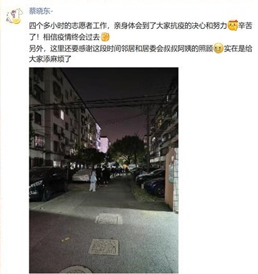 面对此次疫情严峻的形势,2021级研究生第一党支部党员顾蕴喆同志在申请离校回家的当天,就向社区进行了党员的电话报到,申请在之后的浦西封控时间内担任社区志愿者。居家期间,她积极参与社区核酸检测和送菜等志愿服务。她五点钟起床,六点钟到岗担任核酸检测志愿者。无间隙地站立工作一上午虽然很辛苦,但她觉得这些都是一名党员应尽的责任和义务,和那些奋战在抗疫一线的工作者们相比,她做的这些微不足道。
