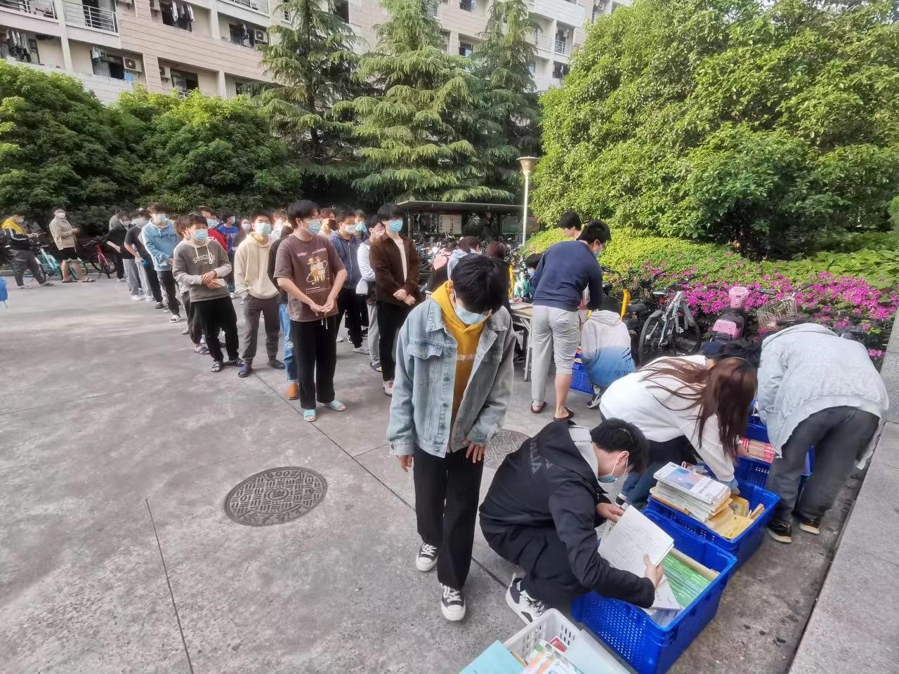 在充分统计同学们的考研需求后,在公司团委的支持下,科创部积极与18级的学长学姐们进行线上对接,以保证双方供需有条不紊。完成了前期的信息统计工作后,科创部带头组织员工会成员于5月1日下午分别在南区12、14号楼楼下收集捐赠分享的考研资料,此活动得到了18级毕业班学子的热情响应。工作人员随后将捐赠的书籍资料进行分类整理,并于5月2日在南区9号楼为有需求的同学们进行了考研资料的有序分发。