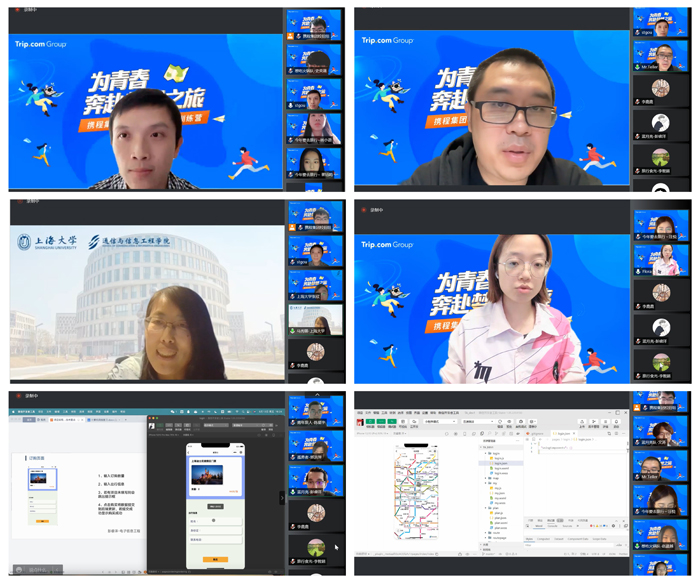 此次训练营结营项目以“旅行”为主题让学员自行开发项目,26位学员共7个小组,依次从项目灵感、项目亮点、技术说明、难点突破等方面进行成果展示。每个小组从不同角度切入,开发并制作便利于旅行的小程序或者网页,从前端设计到后端开发,向大家展示了本次训练营的成果,各位评委老师也随之给出了专业性的点评和指导。经过近三个小时的展示与角逐,最后由通信和计算机公司组队的“爱吃爱玩”小组获得总分第一。此后,携程也会给优秀的学员发放留用实习的offer。