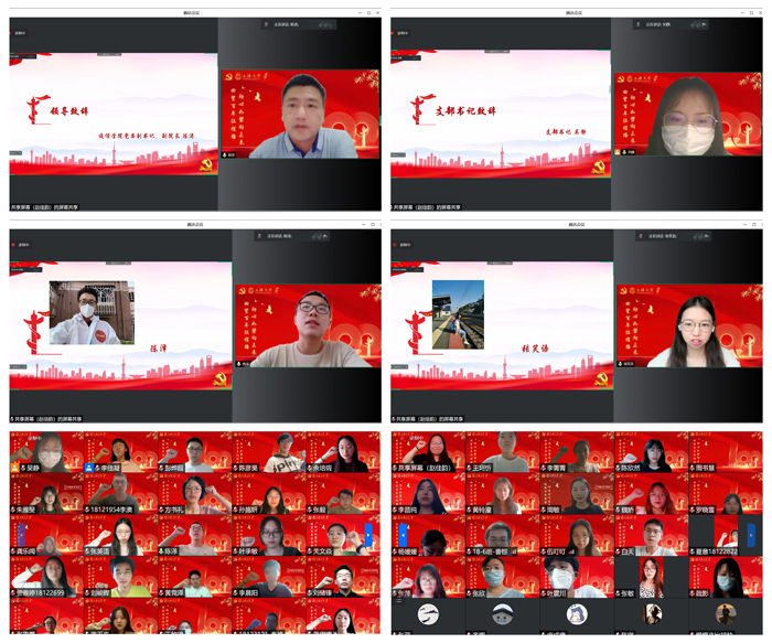 最后,由陈泽同志带领支部成员重温入党誓词,同学们在屏幕前举起右拳重温入党誓词,并通过云端合影留念。