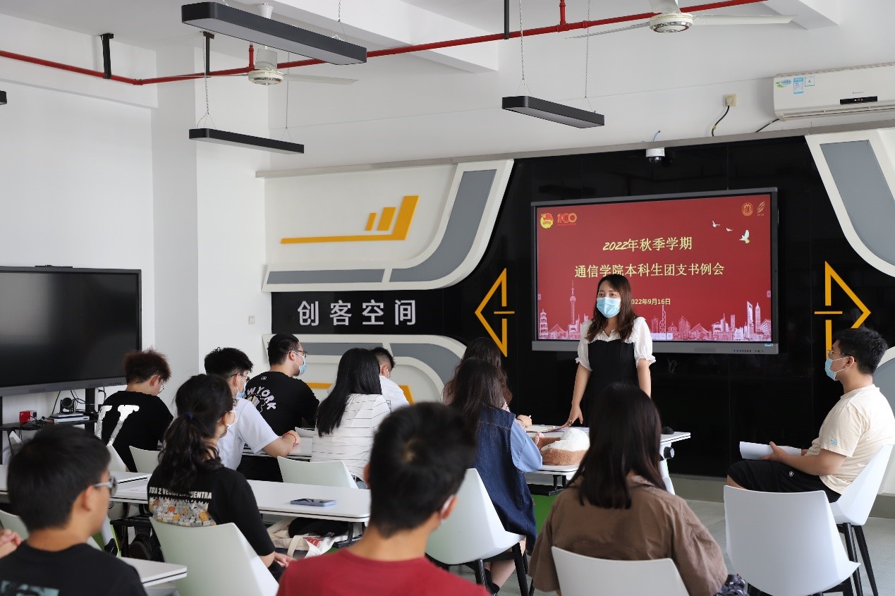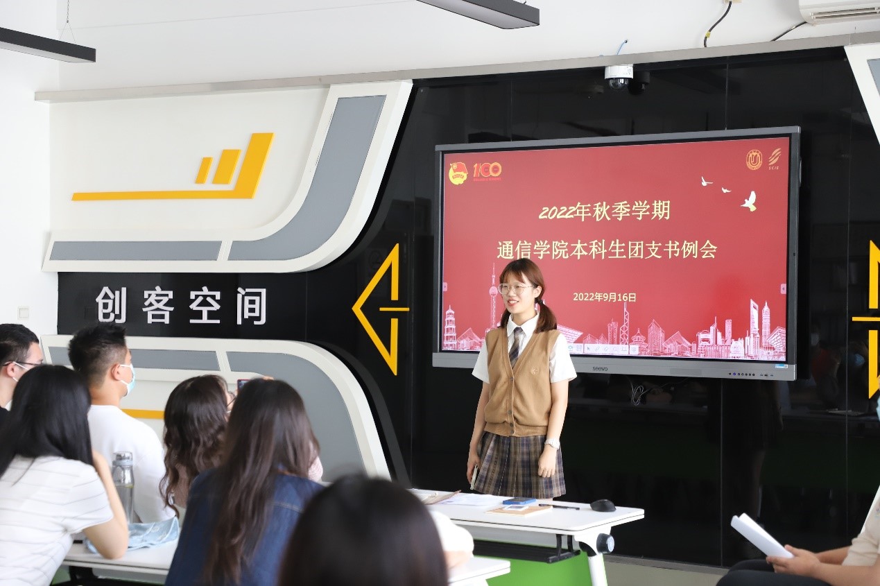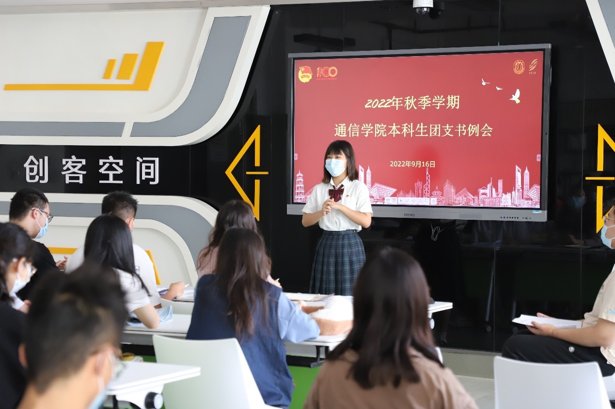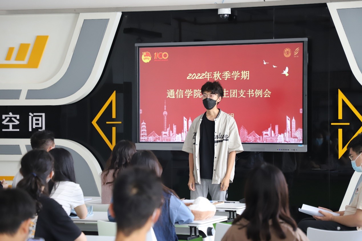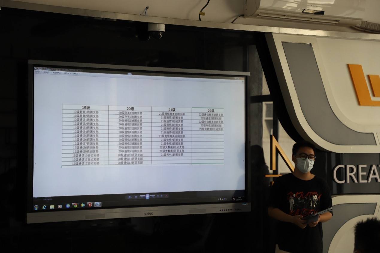 随后,吴静老师和20级通信4班团支书、人工智能社副社长胡权同学向大家发出邀约,号召各团支部能够将“新颖的点子”结合社团“过硬的技术”来联合举办一场富有通信专业特色的主题团日教育活动,同时进行了21级团总支书记的竞选。