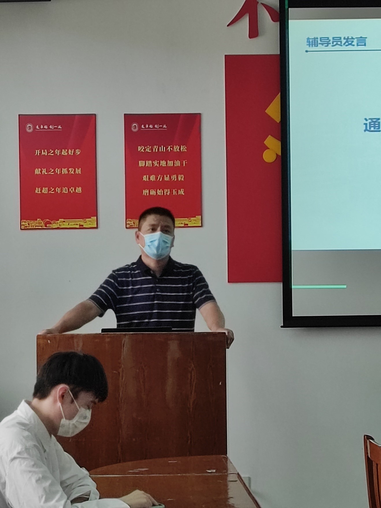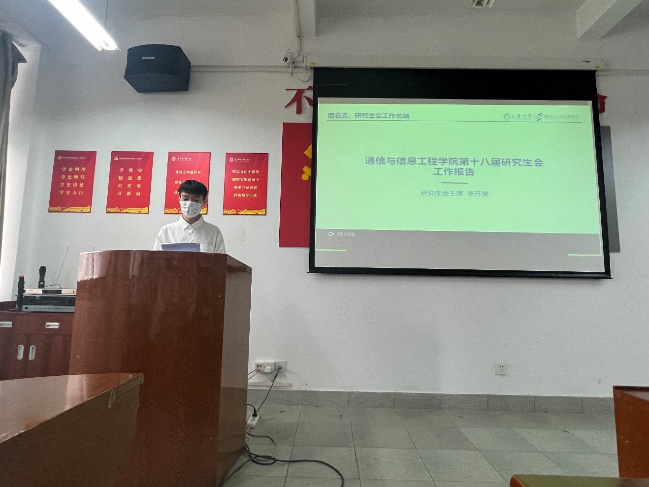 最后,团委副书记万星佑老师回顾了过去一年团总支和研究生会取得的工作成绩,特别赞扬了疫情期间十八届团总支和研究生会成员们的辛勤奉献和榜样作用,并希望新一届研究生团总支、研究生会委员们能够继续努力,为yl23411永利集团谱写更加壮美的青春华章!