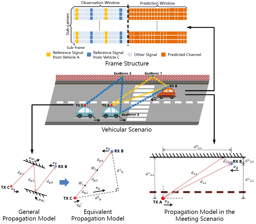 车联网直连通信场景示意图,接收端车辆利用历史信道信息来预测信道响应