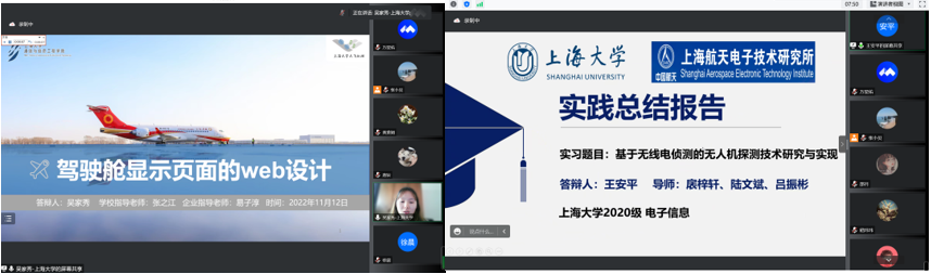 首先,张小贝副经理对答辩流程与要求进行了简要介绍,并希望各位同学通过答辩交流,为高质量的学位论文写作与答辩打下坚实基础。随后,2020级“大飞机班”“航天电子班”同学针对自己的研究课题展开了答辩分享,分别从研究背景与意义、研究内容与方法、成果与总结、学位论文提纲等方面进行汇报,校内导师和企业导师们也与同学们开展深度交流,对具体技术问题进行点评和提出建议。