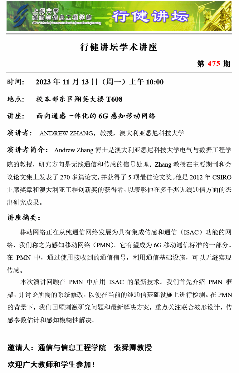 上一条:行健讲坛 №476 -感知参数估计性能界:从CRB到ZZB 下一条:行健讲坛 №474 -光频梳光谱在大气遥感中的应用与前景