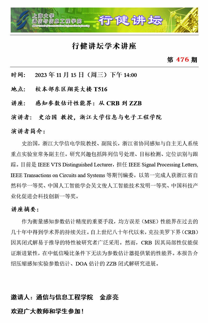 上一条:行健讲坛 №477 -热声成像监控的微波热疗技术 下一条:行健讲坛 №475 -面向通感一体化的6G感知移动网络