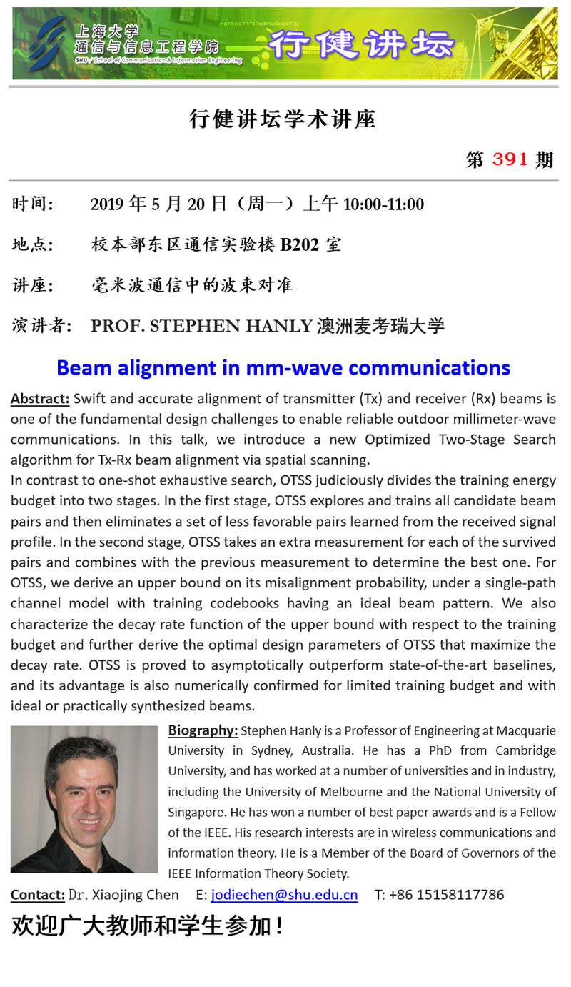 上一条:行健讲坛 №392 -通过隐蔽通信隐藏用于无线传输的无人驾驶飞行器 下一条:行健讲坛 №390 -用于心脏长期健康监测的低功耗医疗雷达
