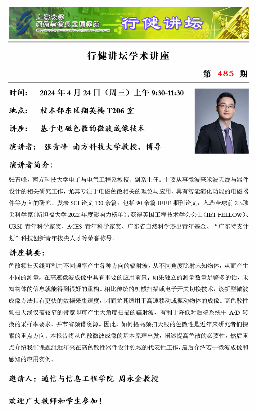 上一条:行健讲坛 №486 -微波技术空间应用问题探讨 下一条:行健讲坛 №484 -终端小尺寸高性能毫米波阵列天线研究