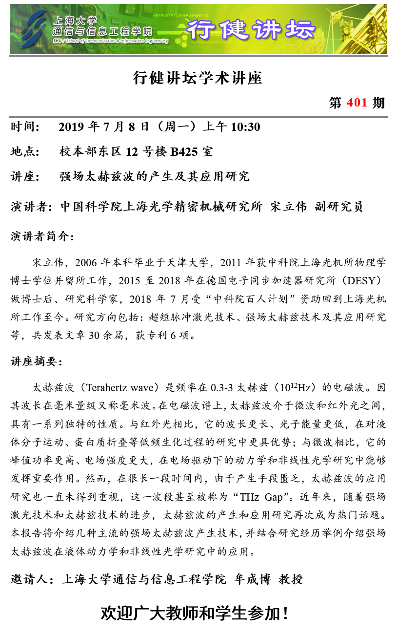 上一条:行健讲坛 №402 -二维半导体非线性光学及应用 下一条:行健讲坛 №400 -人工智能在青光眼筛查中的应用–从超像素分割到深度学习