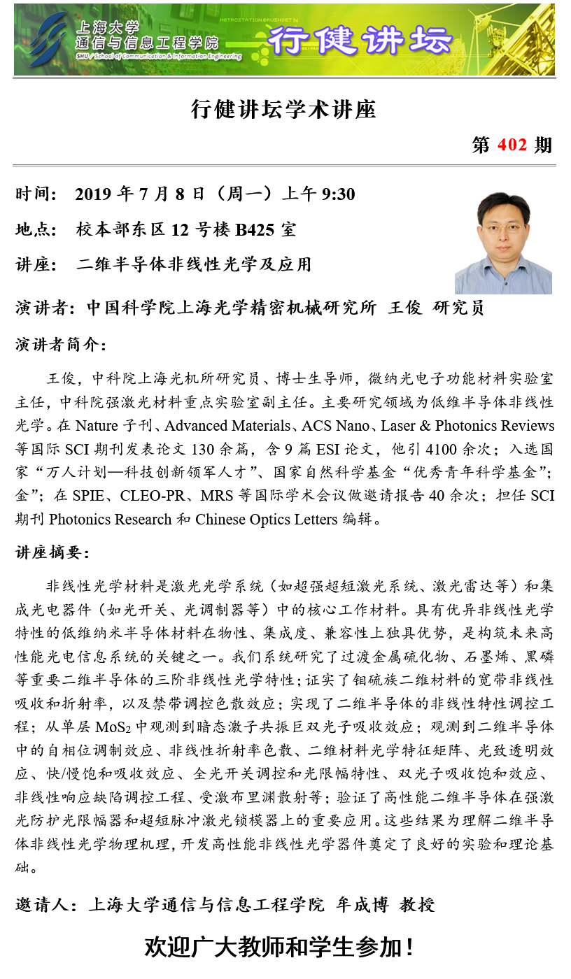 上一条:行健讲坛 №399 -基于深度学习的人脸识别算法系统 下一条:行健讲坛 №401 -强场太赫兹波的产生及其应用研究