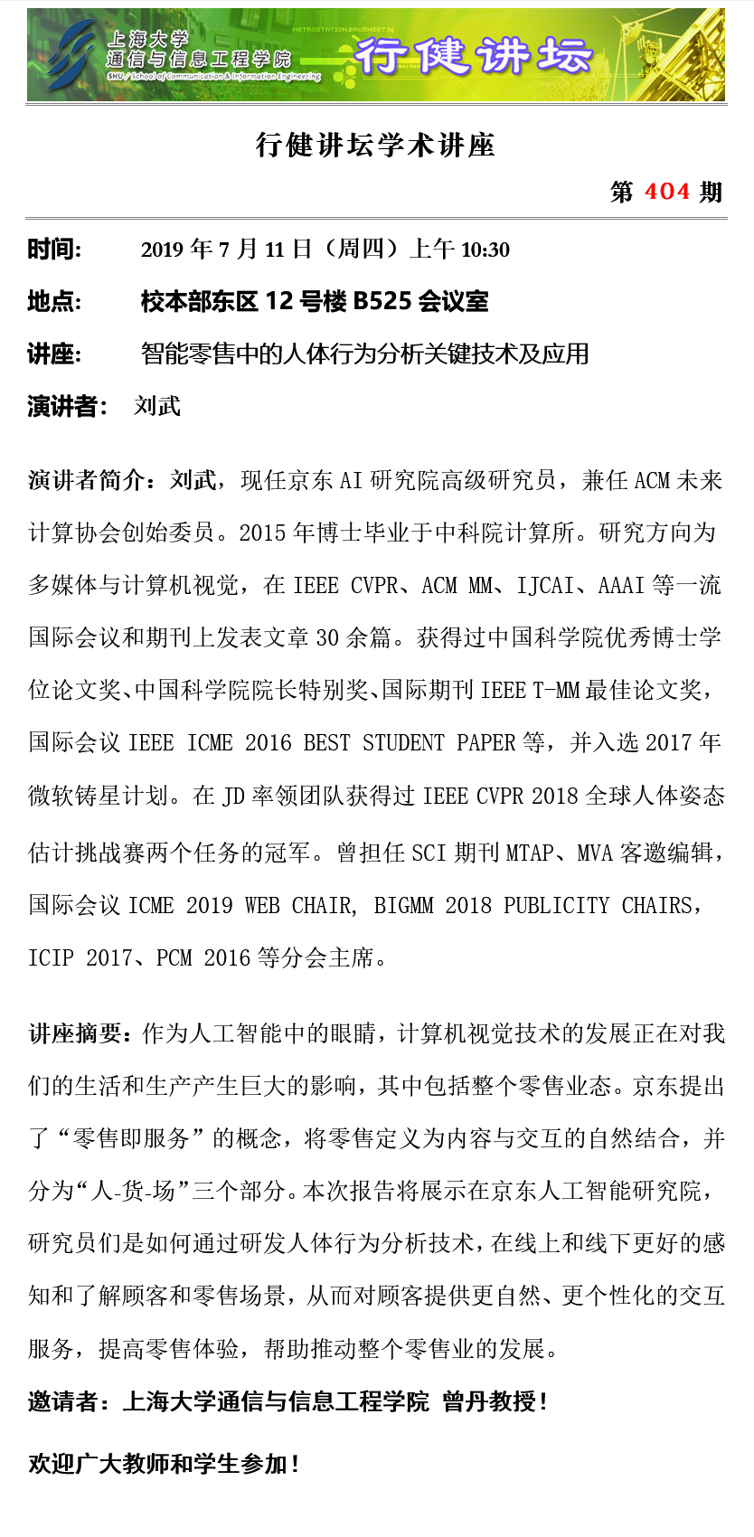 上一条:yl23411永利集团海外访问学者项目讲座 下一条:行健讲坛 №403 -多媒体内容描述生成技术(Learning to Caption Multimedia)