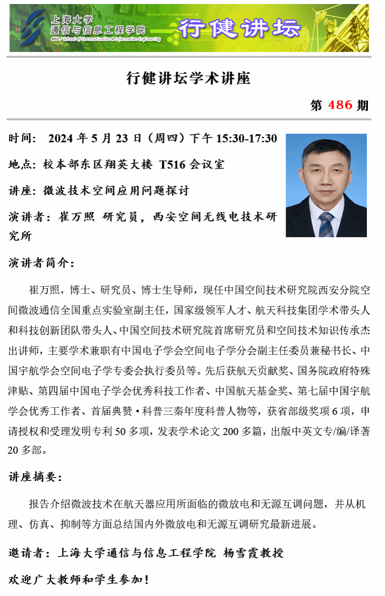 上一条:行健讲坛 №488 -国外导引系统发展趋势及问题探讨 下一条:行健讲坛 №485 -基于电磁色散的微波成像技术