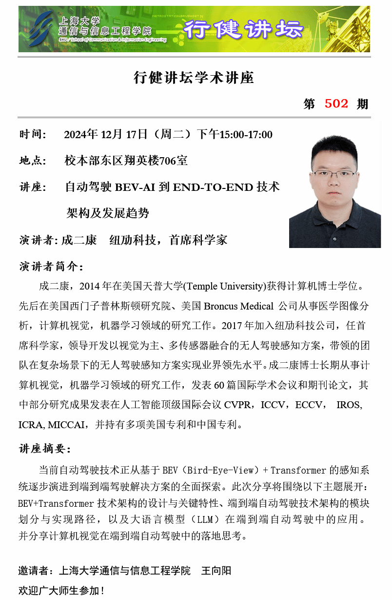 上一条:行健讲坛 №507 -卒中后运动康复与抑郁康复研究进展 下一条:行健讲坛 №498 -毫米波近程探测技术发展与展望