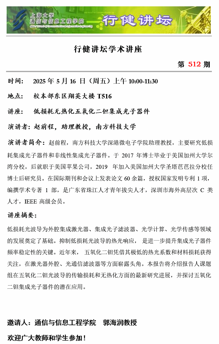 上一条:行健讲坛 №513 -通感一体宽带宽扫描角度相控阵天线 下一条:行健讲坛 №511 -信能同传技术及系统应用