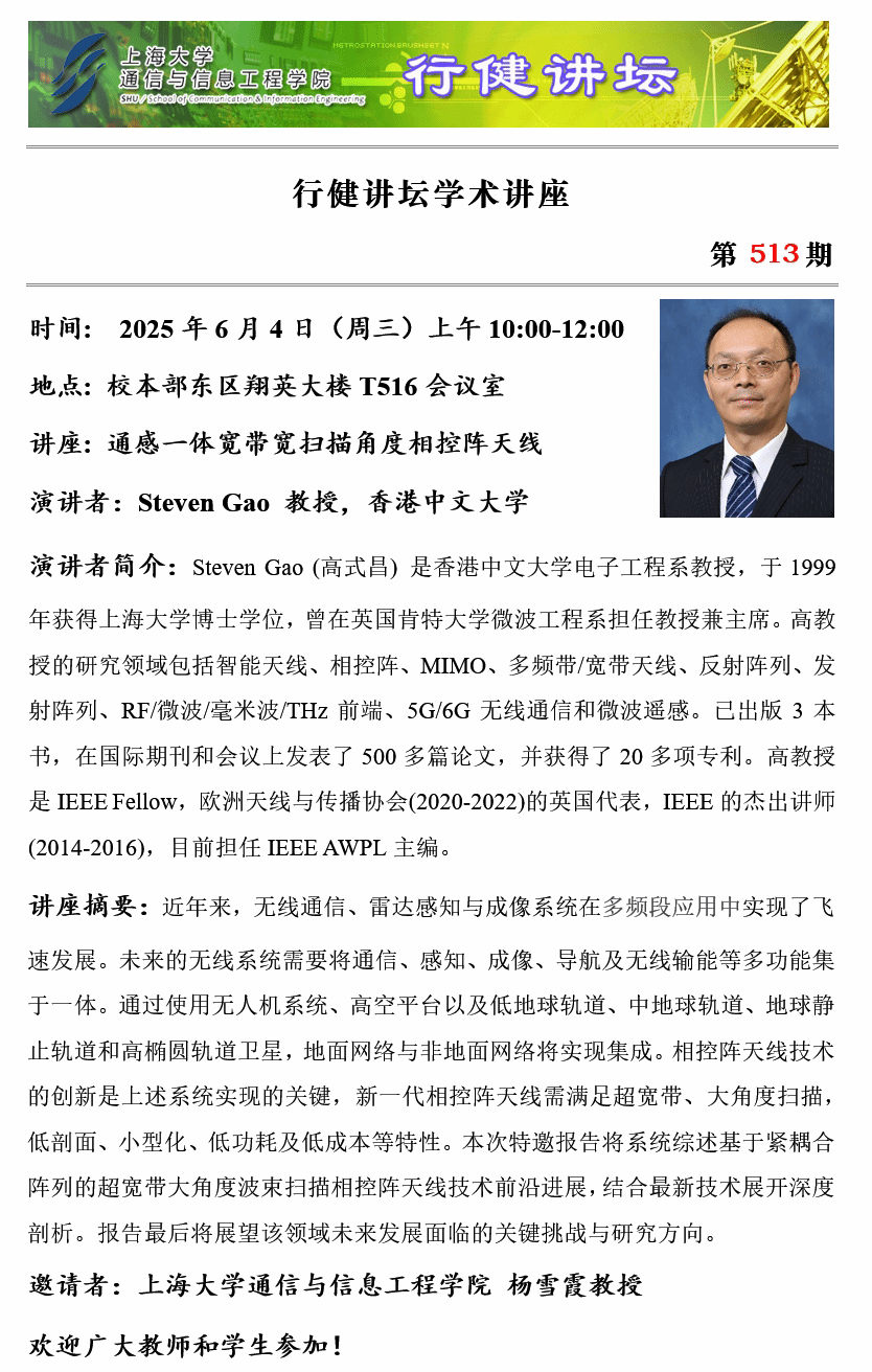 上一条:行健讲坛 №514 -面向未来IOT的感知/传能相控阵研究 下一条:行健讲坛 №512 -低损耗无热化五氧化二钽集成光子器件