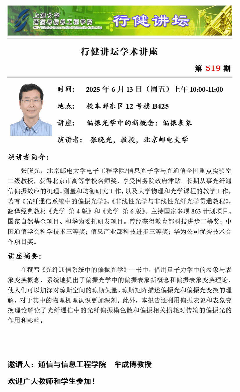 上一条:行健讲坛 №520 -面向未来通信基础设施的多频共孔径天线阵列干扰管理 下一条:行健讲坛 №518 -计算智能的基本研究领域及其应用