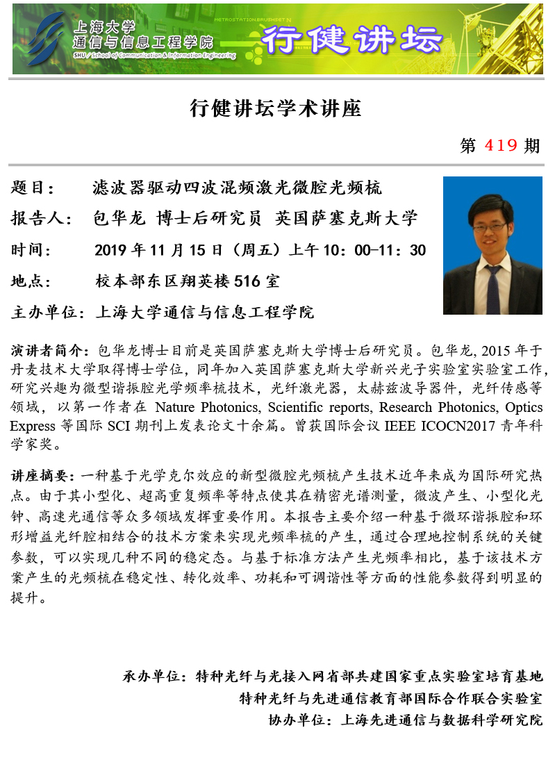 上一条:行健讲坛 №420 -人工表面等离激元传输特性分析及应用 下一条:行健讲坛 №418 -Recent Progress and Opportunities in Advanced Functional Fibers