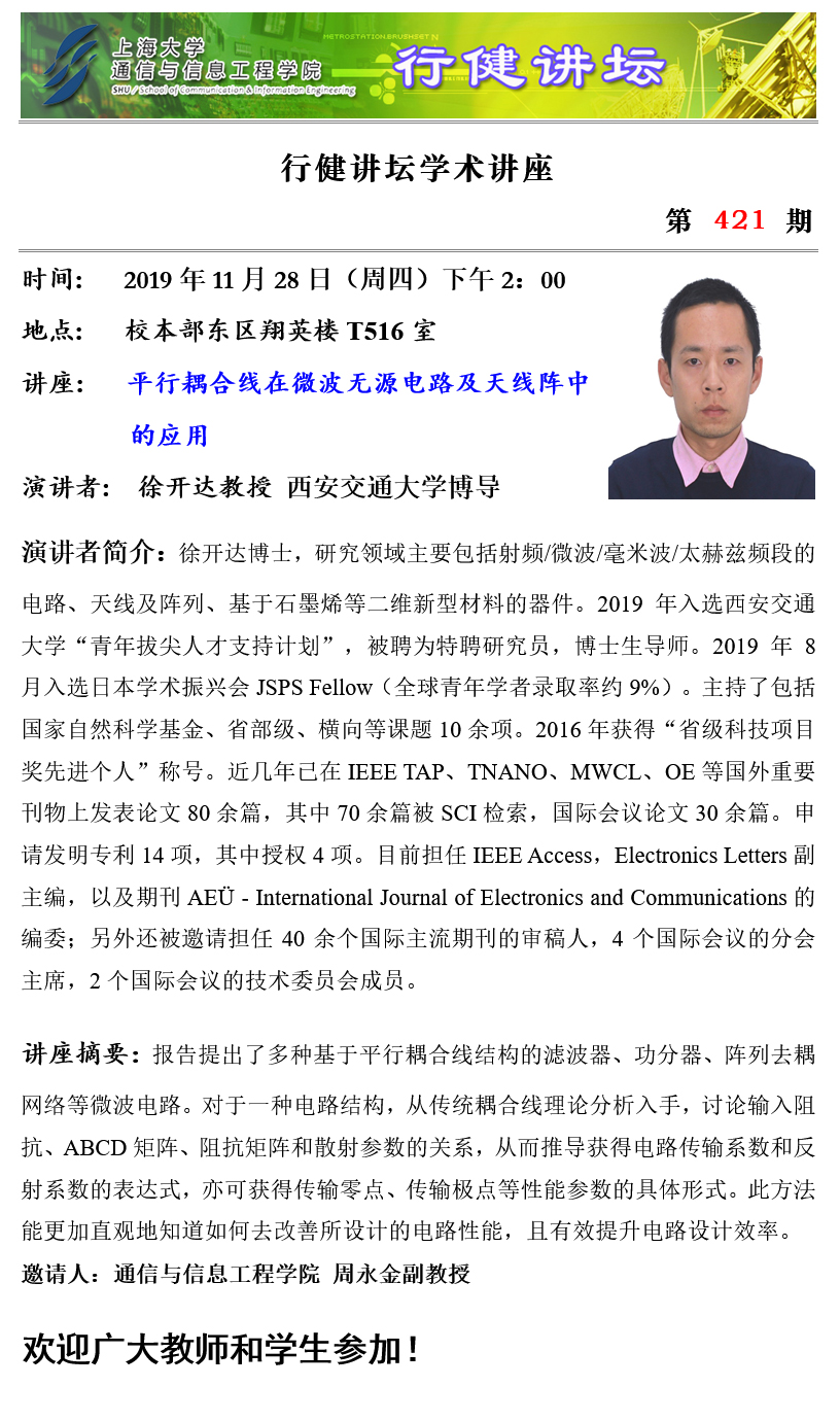 上一条:行健讲坛 №422 -漫谈知识产权的保护与鉴定 下一条:行健讲坛 №420 -人工表面等离激元传输特性分析及应用