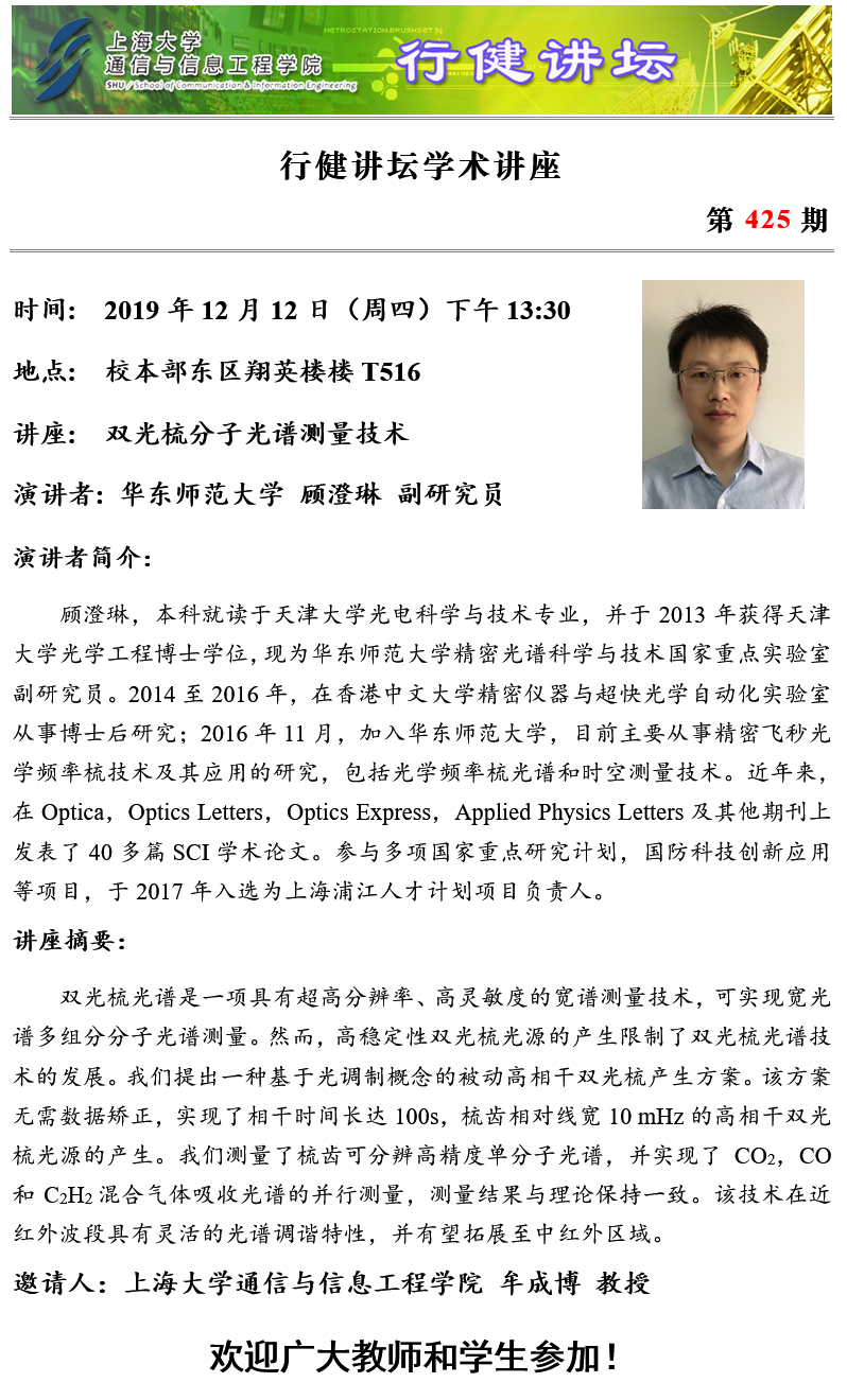 上一条:行健讲坛 №426 -连续变量量子信息研究 下一条:行健讲坛 №424 -结构光场调控及其在光通信中的应用