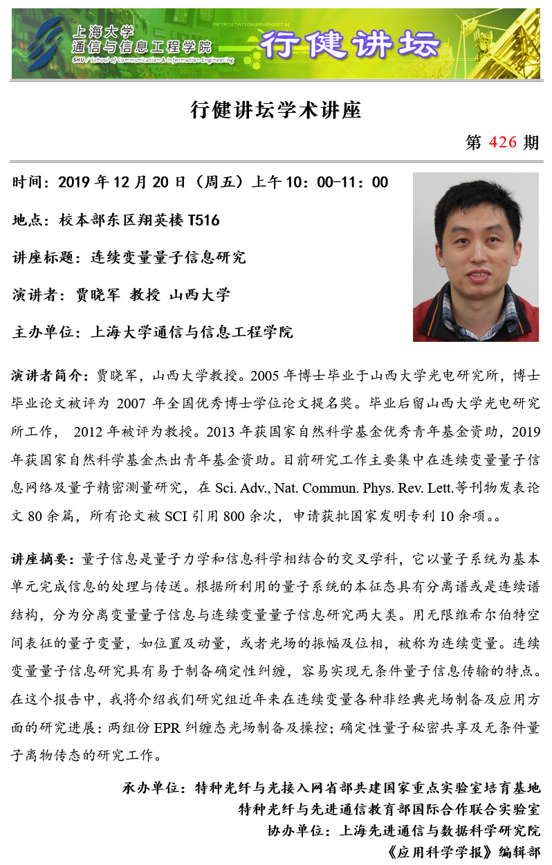 上一条:行健讲坛 №427 -激光干涉、激光回馈及其应用 下一条:行健讲坛 №425 -双光梳分子光谱测量技术