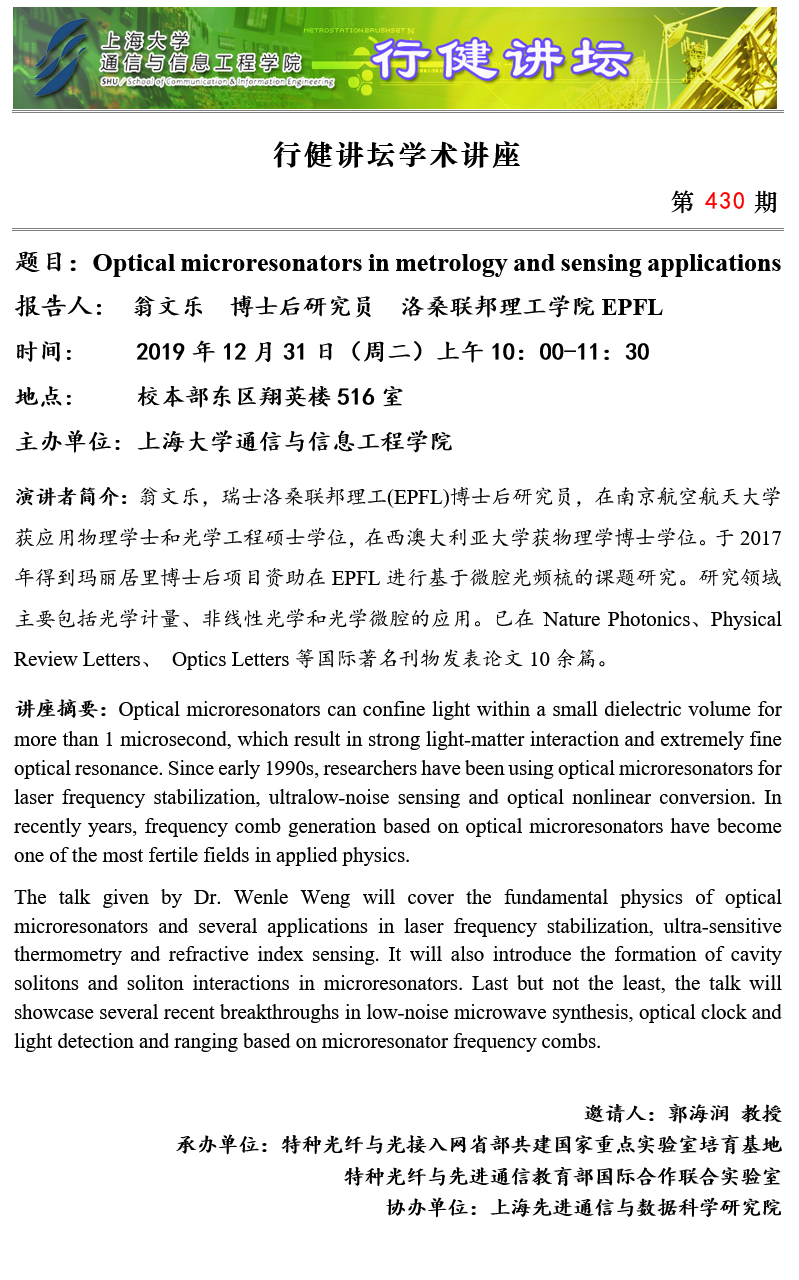 上一条:行健讲坛 №431 -深度强化学习与视觉内容理解 下一条:行健讲坛 №429 -Microresonator-based optical frequency combs